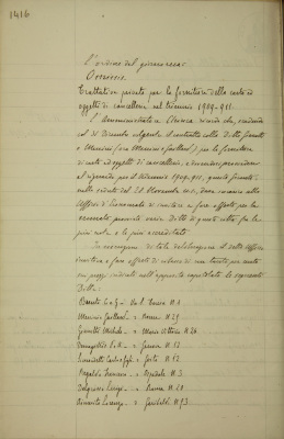 Trattativa privata per la fornitura di carta ed oggetti di cancelleria per il triennio 1909-1911
