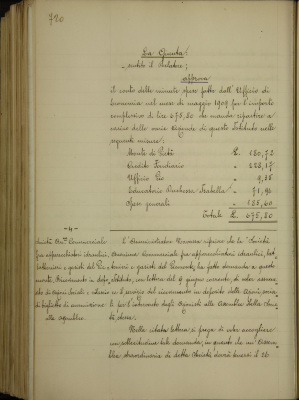 Conto minute spese dell'Economato per il mese di maggio 1909