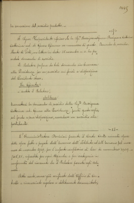 Vinelli Giuseppe ex commesso del Monte. Domanda di sussidio