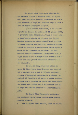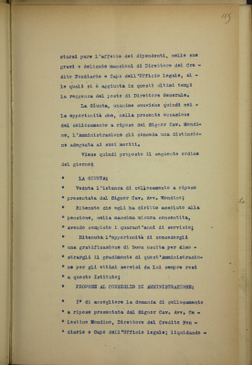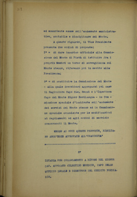 Istanza per collocamento a riposo del cav. Mondino Celestino, capo dell'ufficio legale e direttore del Credito fondiario