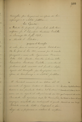 Questione ospitaliera torinese. Domanda del sindaco di Torino perché le lire 200.000 ancora da versarsi sul contributo di lire 500.000 di questo Istituto siano destinate a favore del nuovo Ospedale di San Luigi