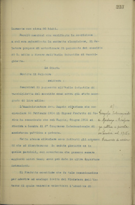 Asilo infantile di Vanchiglietta, domanda di pagamento di sussidio già assegnato sugli utili 1909 del Monte di pietà