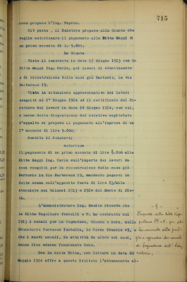 Ricostruzione della casa di via Barbaroux n. 19. Pagamento di un primo acconto all'impresa Ing. Carlo Maggi
