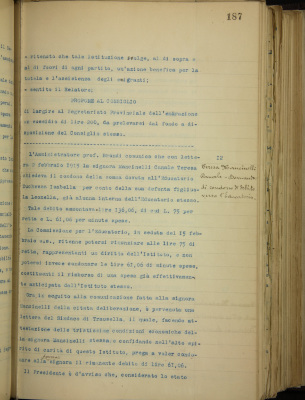 Teresa Mancinelli Canale, domanda di sussidio per pagamento di debito verso l'EDI