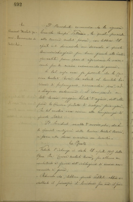 Comunicazioni: a) lascito Nicolay, parere dell'avv. Franco Bruno circa l'erogazione di sussidi a parenti; b) Cucina malati poveri, domanda di sussidio; c) Credito fondiario, esonero dalla tassa di esercizio; d) prestiti sull'onore