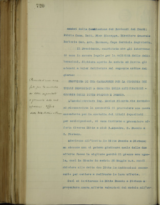 Provvista di una cassaforte per la custodia dei titoli depositati a garanzia delle anticipazioni. Offerte delle ditte Pistono e Poesio