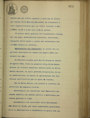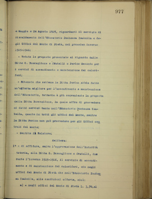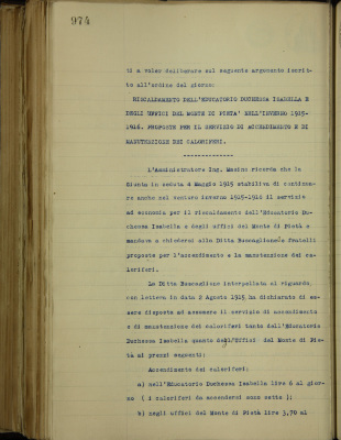 Riscaldamento dell'EDI e degli uffici del Monte di pietà nell'inverno 1915-1916. Proposte per il servizio di accensione e di manutenzione dei caloriferi