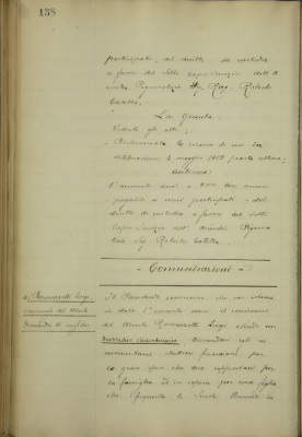 Comunicazione: a) Ramazzotti Luigi, commesso dell'Azienda pignoratizia, domanda di sussidio; b) nuovo ampliamento dell'impianto del servizio cassette di sicurezza
