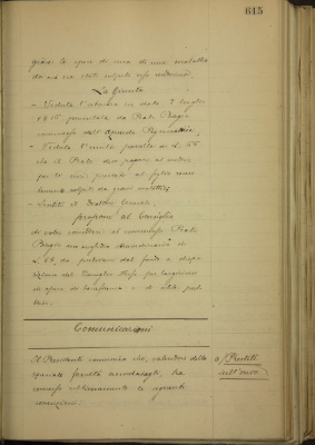 Comunicazioni: a) prestiti sull'onore; b) concessione del 1° aumento triennale della retribuzione al personale della succursale di Novara; c) requisizione dell'EDI da parte dell'autorità militare