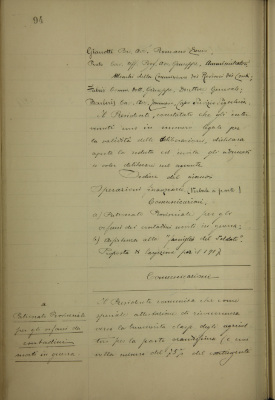 Comunicazioni: a) Patronato provinciale per gli orfani dei contadini morti in guerra; b) assistenza alla «Famiglia del soldato». Proposte di largizione per il 1917