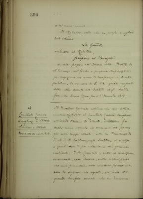 Domanda dell'Istituto Protette di San Vincenzo per pagamento della retta dovuta per il 1° trimestre 1918 dalla figlia dell'ex impiegato straordinario Lanza Giovanni