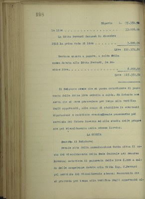 Riscaldamento della sede centrale dell'Istituto nel decorso inverno. Saldo delle competenze spettanti alla ditta Carlo Ferrari