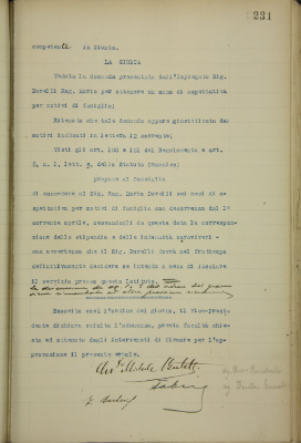 Durelli Mario, domanda di aspettativa per motivi di famiglia