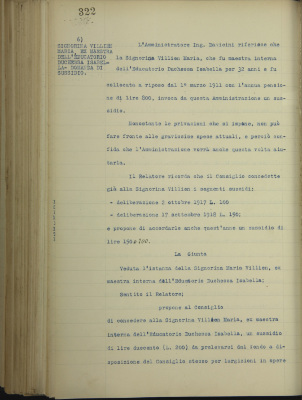Signorina Vallien Maria ex maestra dell'EDI. Domanda di sussidio