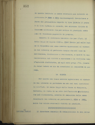 Comunicazioni: a) riforma organici; b) sequestro libretti al portatore; c) lettera ditta Saverio Parisi