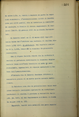 Azienda pignoratizia. Istanza dell'agente perito sig. Muretti Giovanni