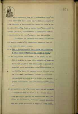 Provvedimenti per il riscaldamento nell'inverno 1919-1920 della sede dell'Istituto e degli uffici centrali e succursali del Monte di pietà e per il riscaldamento, bagni e cucina, dell'EDI