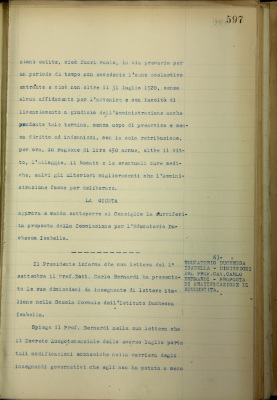 EDI. Nomina del prof. Carlo Bernardi. Proposta di gratificazione di buonuscita