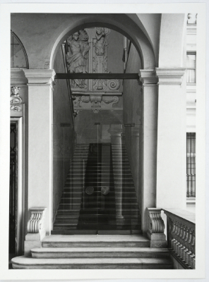 Cortile interno dello stabile di piazza San Carlo dopo la ristrutturazione. Scalinata