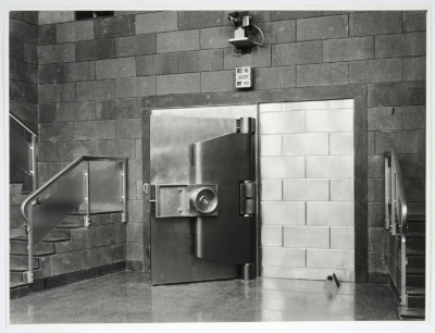 Stabile di piazza San Carlo dopo la ristrutturazione: porta blindata caveau