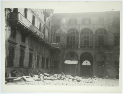 Cortile interno dello stabile di piazza San Carlo dopo le incursioni aeree del 1943