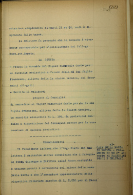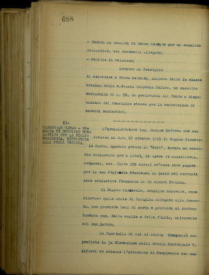 Carnevale Carlo. Domanda di sussidio scolastico per la figlia Francesca, iscrivenda alla prima scuola tecnica