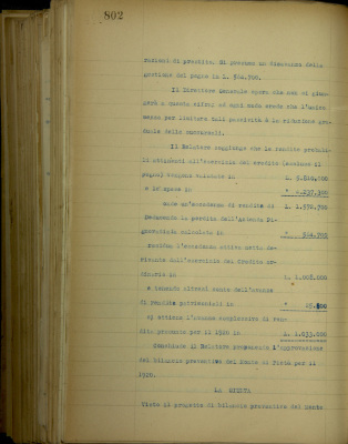 Bilancio preventivo del Monte di pietà per l'esercizio 1920