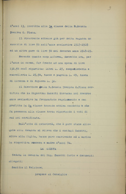 Zanotti Giovanna, allieva della terza classe della Regia Scuola tecnica G. Plana. Domanda di sussidio scolastico