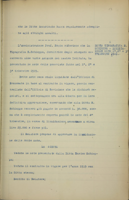 Ditta Tipografica E. Schioppo. Liquidazione note 1°, 2° e 3° trimestre 1919