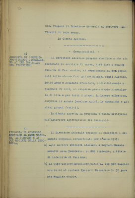 a) proposta di compenso provvisorio giornaliero ai tre impiegati del tesoriere;