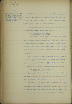Compartecipazione dei depositi fruttiferi al personale delle succursali dell'Istituto ed a quello delle agenzie di città
