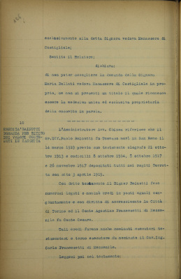 Eredità Bainotti, domanda per ritiro dei valori contenuti in cassetta