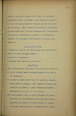 Assegnazione di due posti di fondazione per figli di contadini morti in guerra e resi inabili al lavoro per il servizio di guerra presso l'Istituto Bonafous