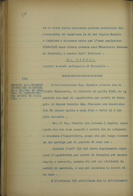 Becchio Fiorenzo, segretario ragioniere, domanda di proroga di aspettativa per motivi di famiglia