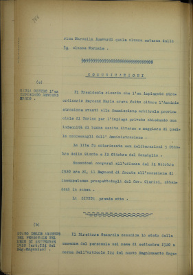 b) stato delle assenze del personale nel mese di settembre 1920 (art. 124 del Regolamento organico);