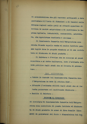 Commissariato generale dell'emigrazione. Domanda di adesione e di contributo a un sindacato di studi per la costituzione di un ente di colonizzazione