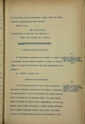 a) Stato delle assenze del personale nel mese di ottobre 1920;