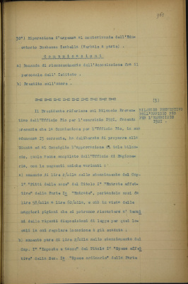 Bilancio preventivo dell'Ufficio pio per l'esercizio 1921