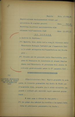 Bilancio preventivo del Monte di pietà per l'esercizio 1921
