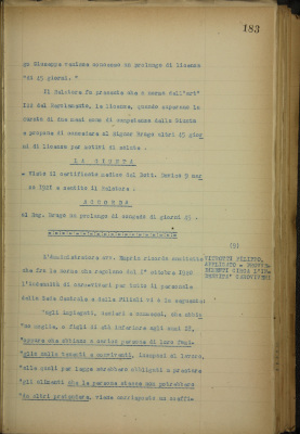 Brugo Giuseppe, domanda di proroga di licenza straordinaria per motivi di salute