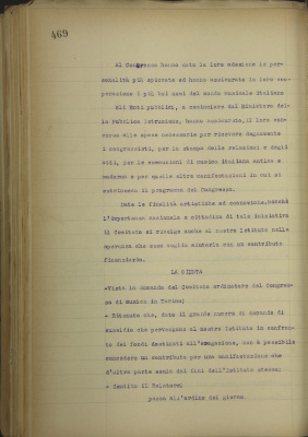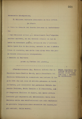 I° Congresso musicale italiano in Torino 11-16 ottobre 1921. Domanda di contributo