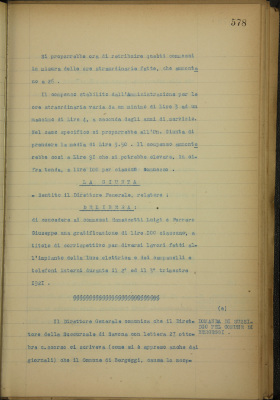 d) commessi Ferrero e Ramazzotti, proposta di compenso per i lavori relativi all'impianto della luce elettrica e dei campanelli e telefoni interni;