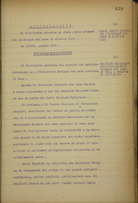 Comunicazioni: a) stato delle assenze del personale nel mese di ottobre 1921; b) Comitato nazionale per l'educazione sociale con sede in Roma, domanda di contributo; c) encomio e gratificazione all'economo Squarzini