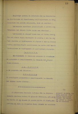 Prato Michele già impiegato straordinario dell'Istituto, istanza per aumento di indennità di licenziamento