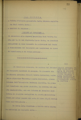 Tosi Angiolina vedova Costa, domanda di sussidio scolastico per la figlia Maria Costa, allieva esterna della prima classe complementare dell'EDI