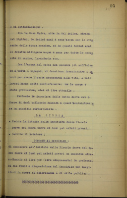 Istituto delle piccole serve del Sacro Cuore di Gesù per i malati poveri. Domanda di sussidio straordinario