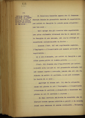 Giovara Fedele, commesso di questo Monte di pietà, domanda di aspettativa per motivi di famiglia