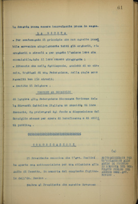Federazione diocesana torinese della gioventù cattolica italiana, domanda di sussidio
