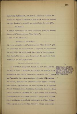 Domanda di contributo dell'on. Villabruna a nome apposito comitato avente per scopo di fornire alle scuole del Piemonte la Bandiera Nazionale