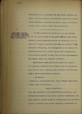 «Terza Italia». Domanda del prof. Efisio Giglio-Tos di contributo per la stampa di un volume a celebrazione della redenzione italiana